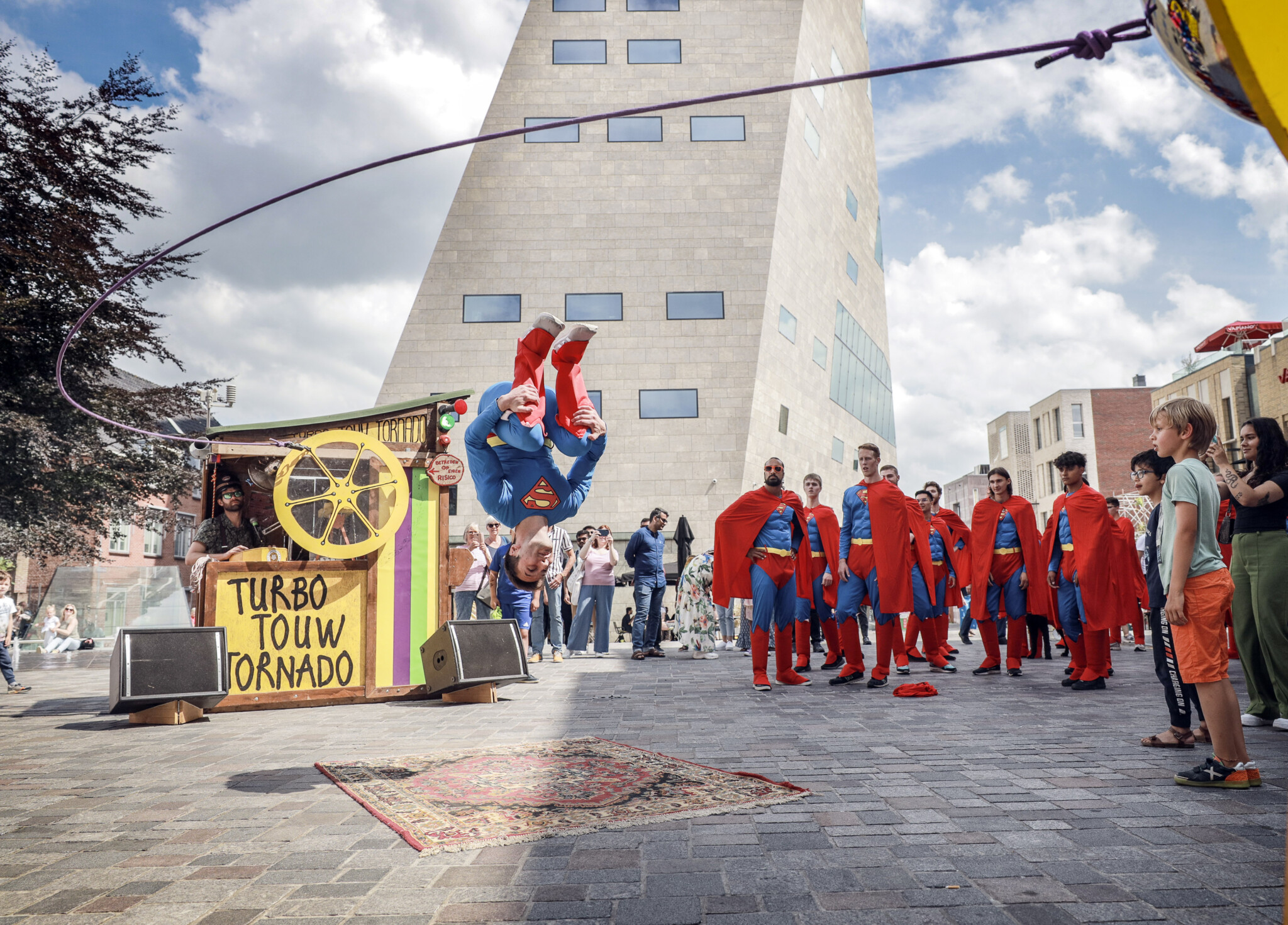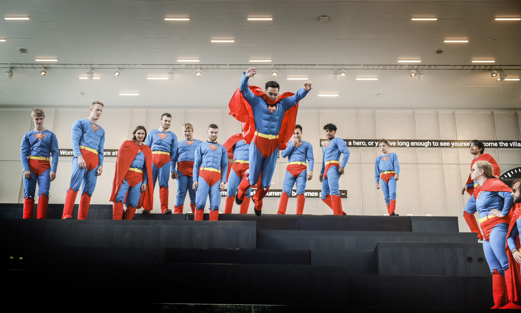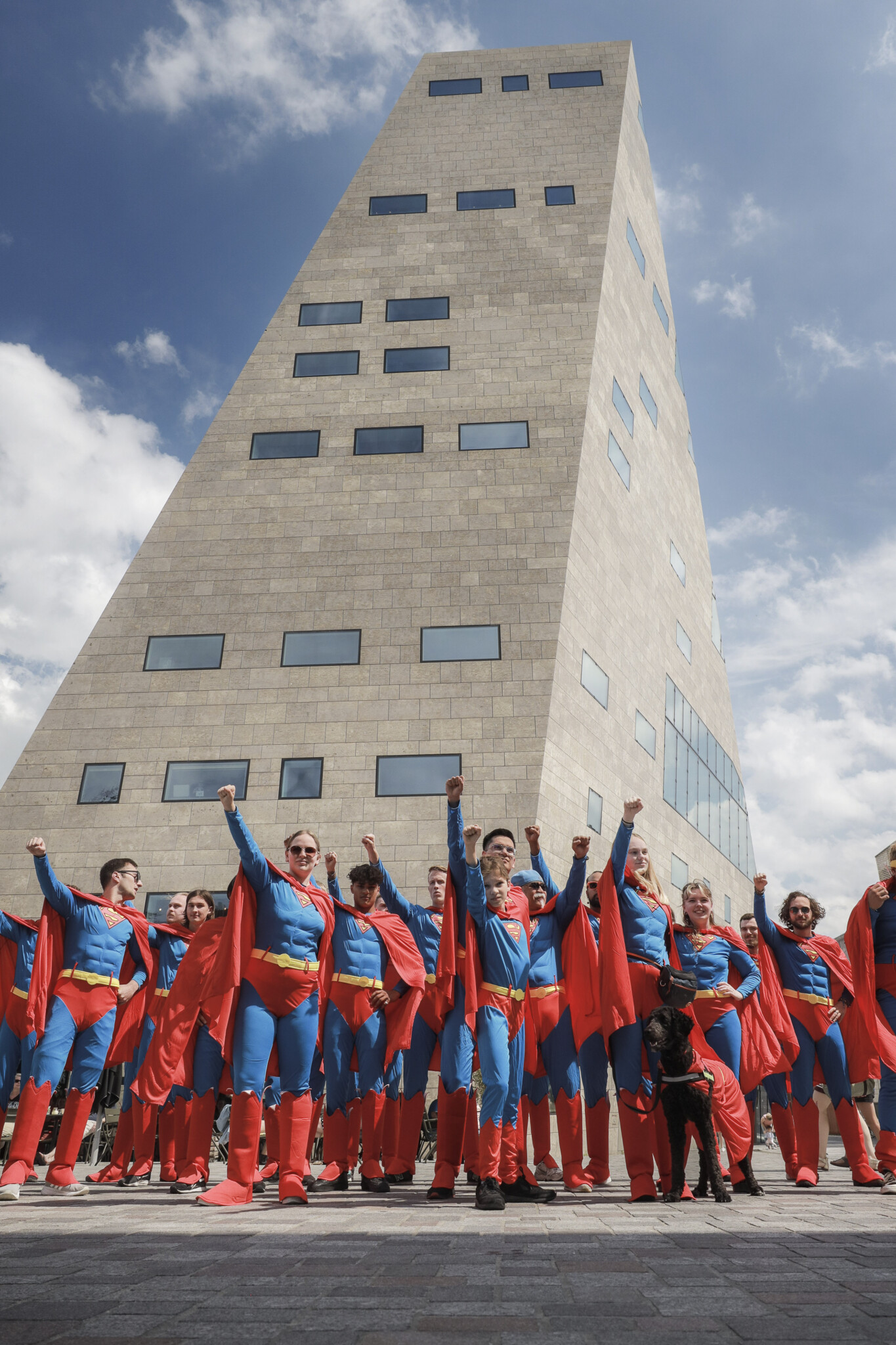 Maar zomaar de stad in sturen voor wat aandacht voelde te braaf. Dus maakten we er een opdracht van. Eén moment. Eén startsein. Vijftig superhelden tegelijk de stad in. Een overload. Geen uitleg, geen bordjes, alleen het beeld. Camera’s erachteraan en kijken wat er gebeurt.