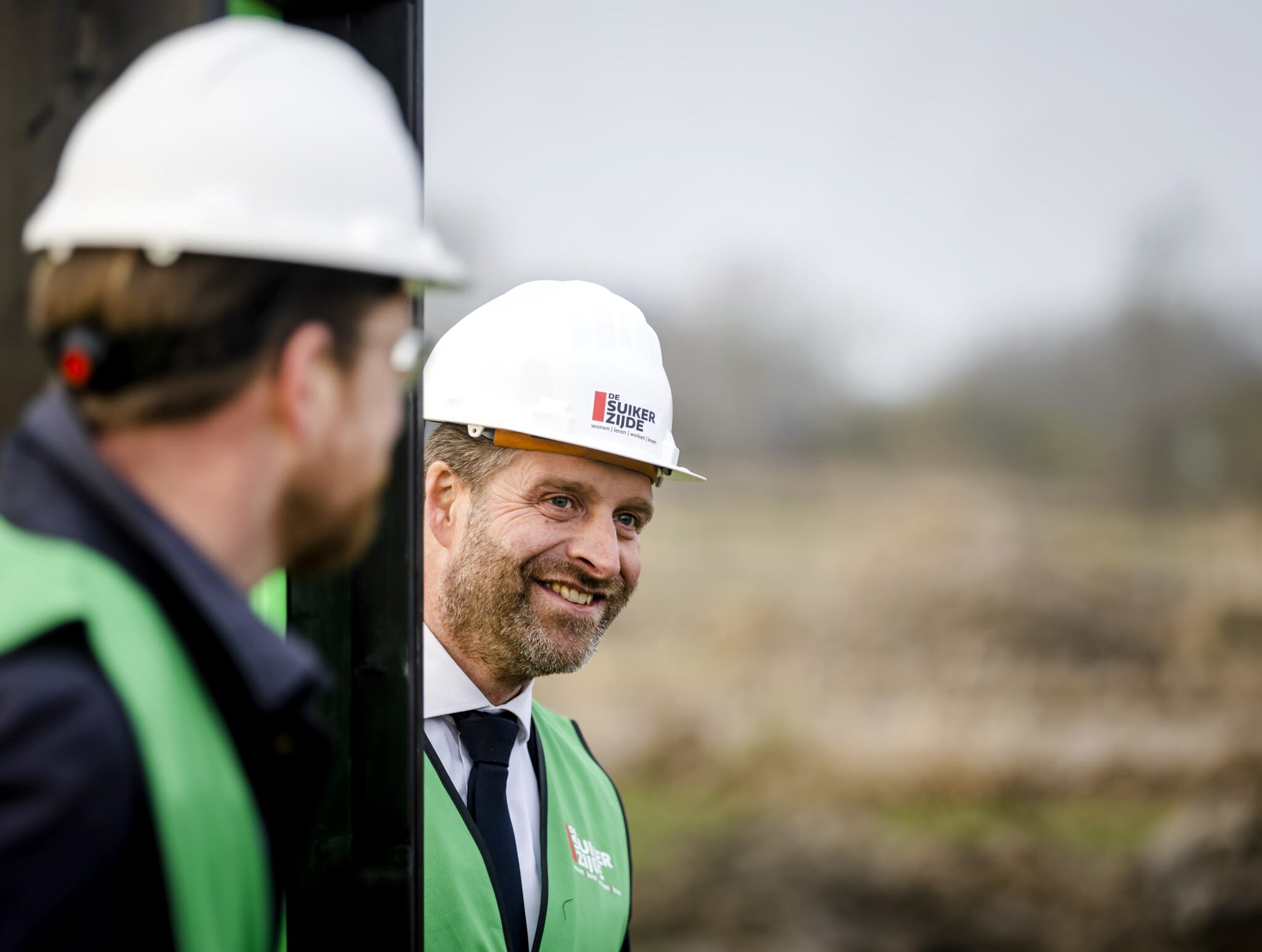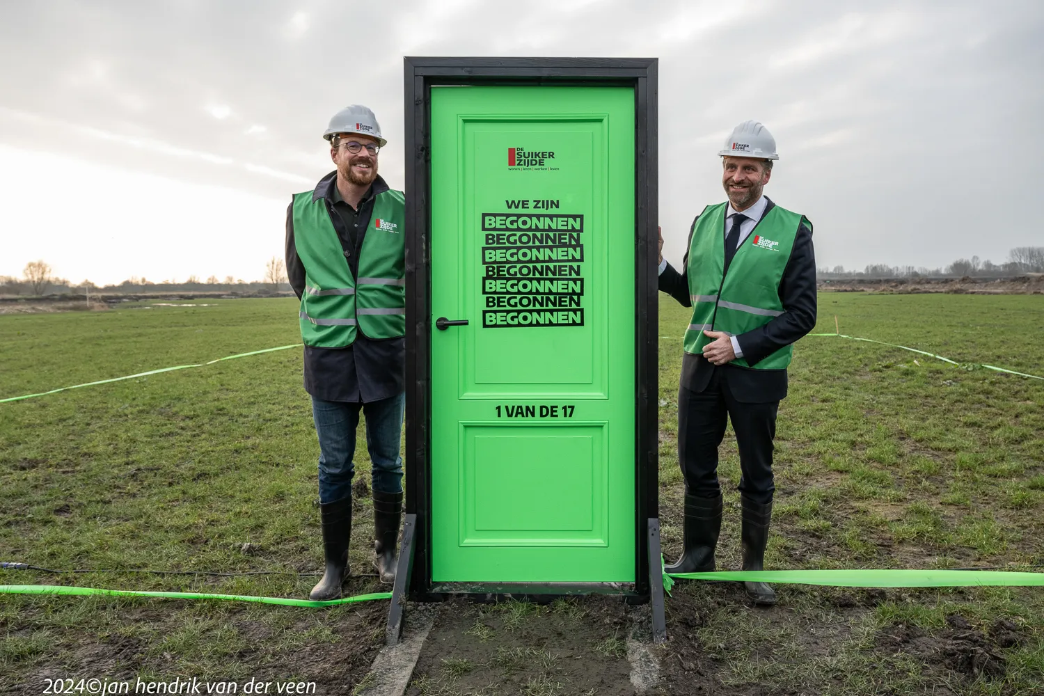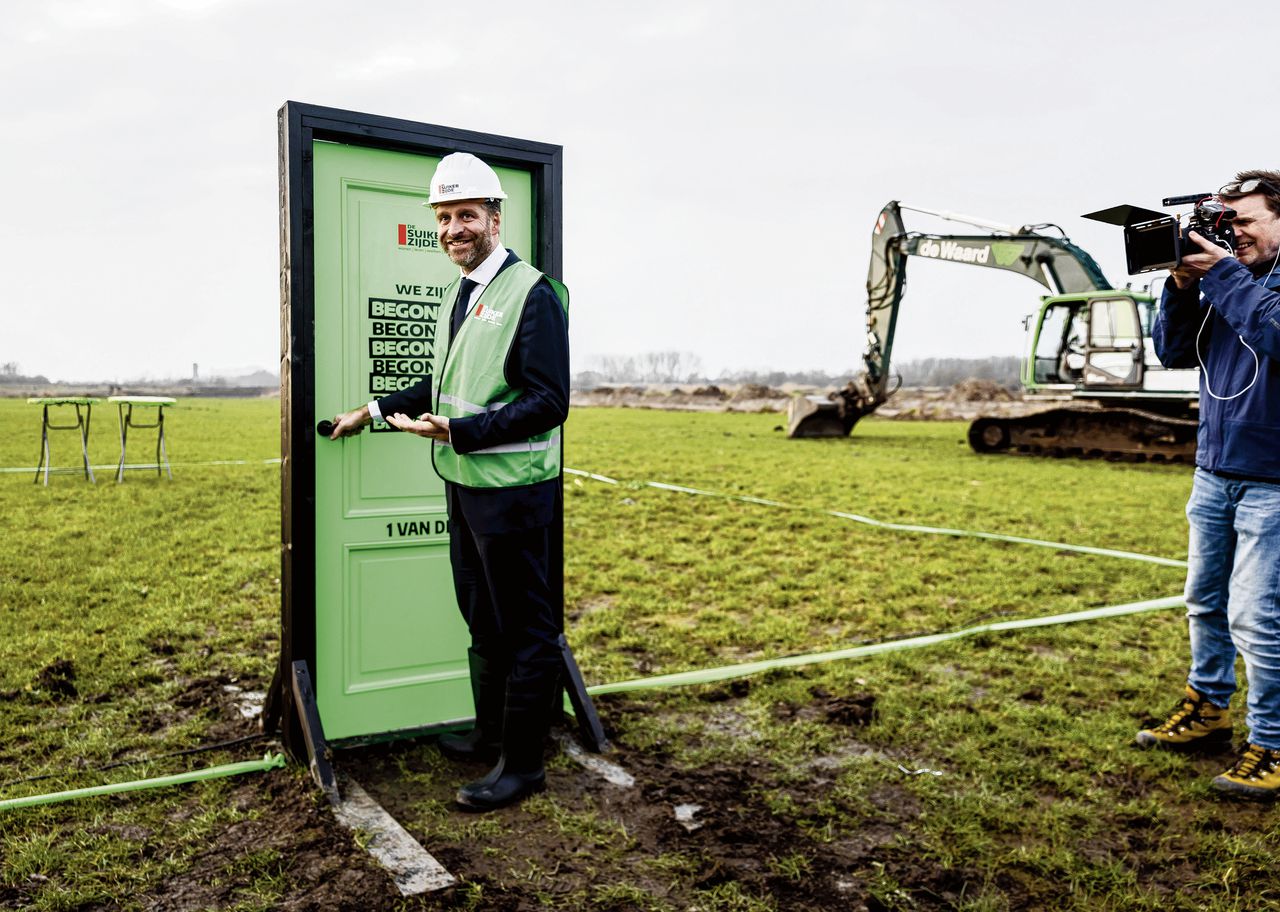 Toen gingen we een stap verder. De bekende gigantische roze schep van Gemeente Groningen, het vaste ritueel bij binnenstadsprojecten, kreeg op de Suikerzijde een neongroen tweede leven. We stonden bij de allereerste groene voordeur van de Suikerzijde, die daarna doodleuk werd afgeleverd bij Hugo de Jonge himself.